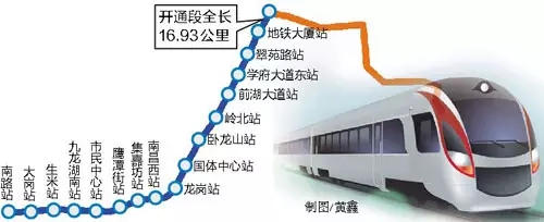 今年9月,南昌地铁2号线11个站点建设规划许可获批。据了解,南昌地铁2号线全长31.5千米(其中一期23.6千米、南延线7.9千米),设站28座,将分段分期开通,明年8月将先期开通地铁大厦至南路站共17座车站,此次获批的11个站点均为明年先期开通段站点。