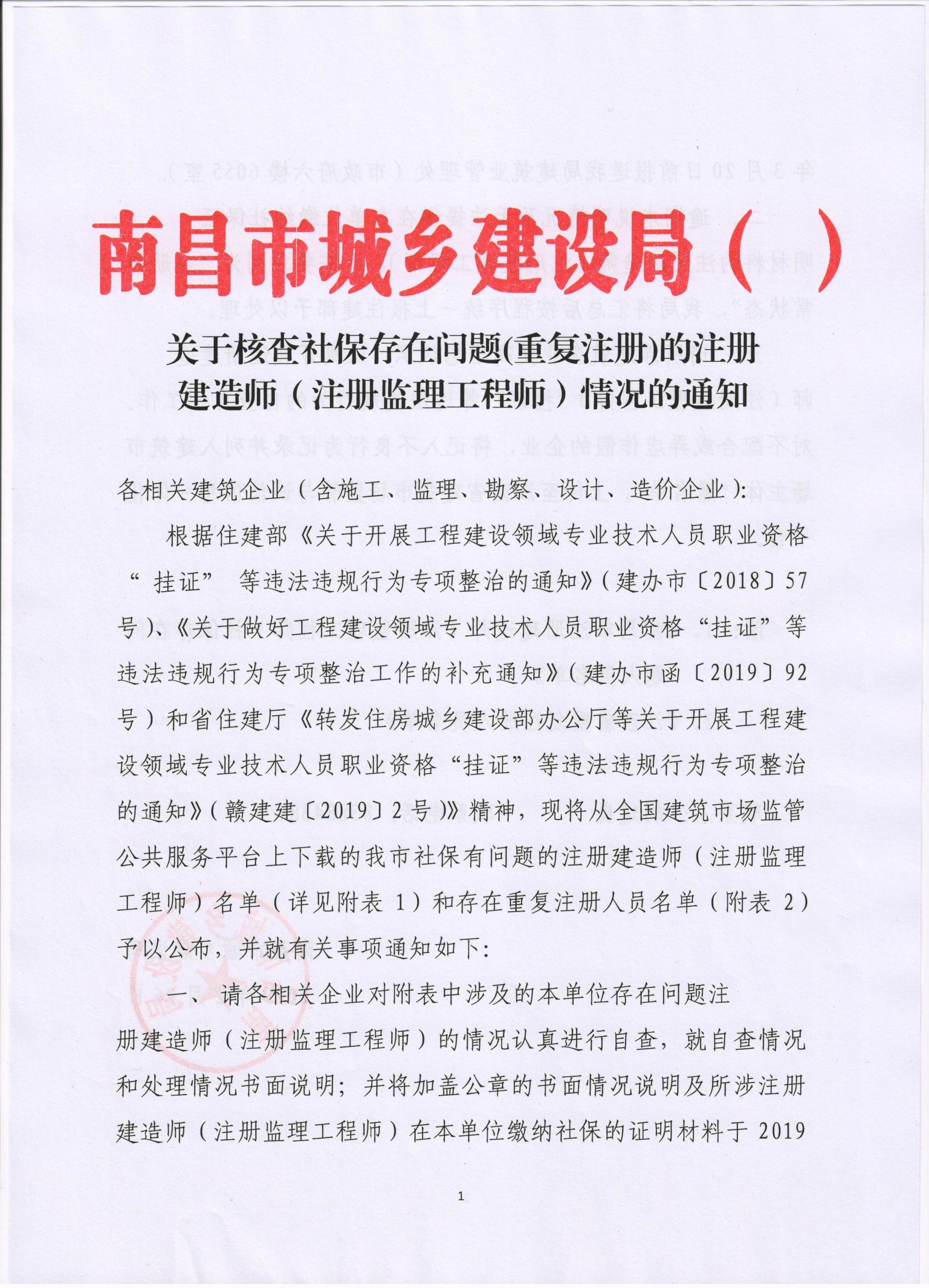 关于核查社保存在问题(重复注册)的注册建造师(注册监理工程师)情况的通知