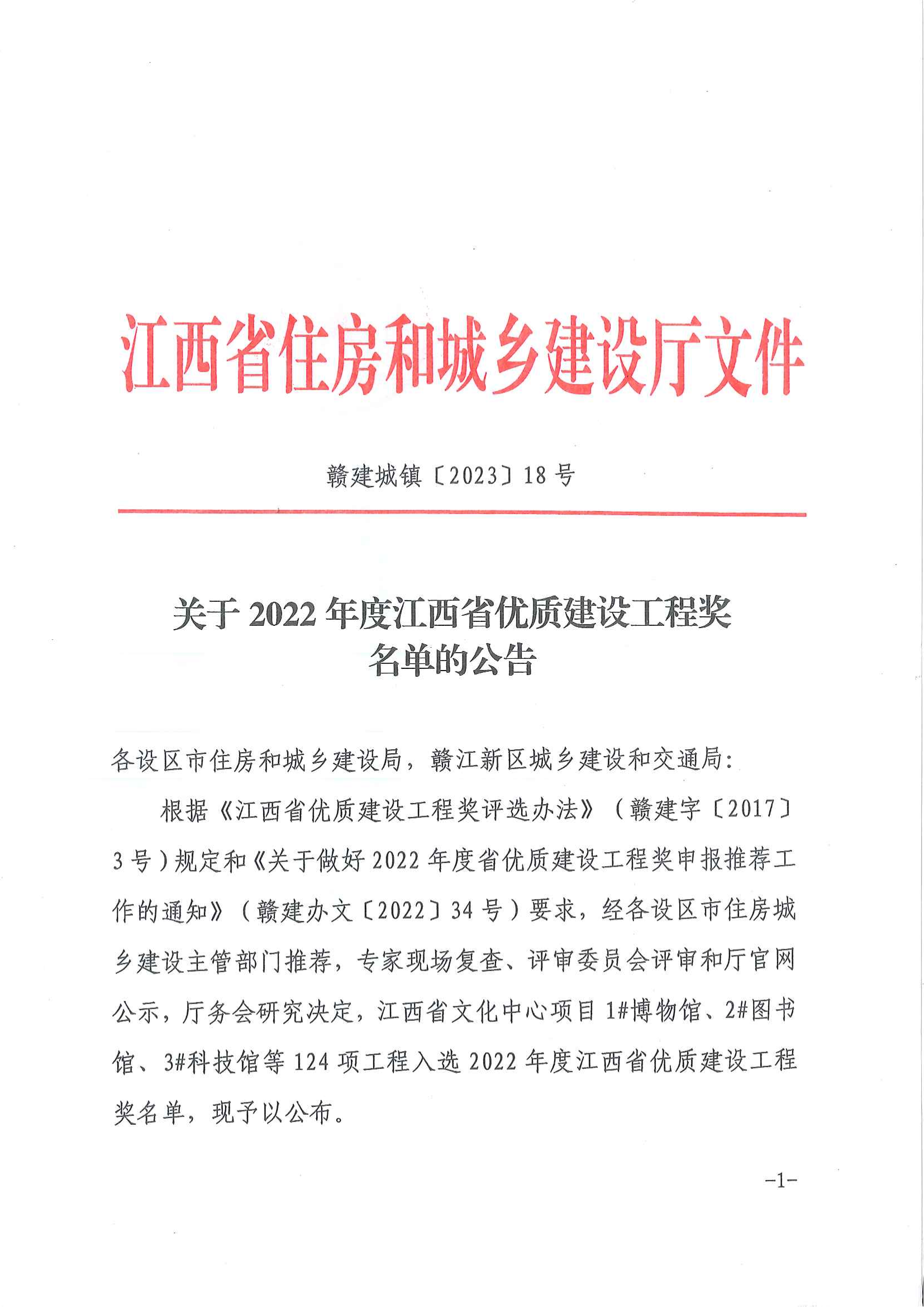 喜讯!祝贺赣阳建工集团荣获2022年优质建设工程奖