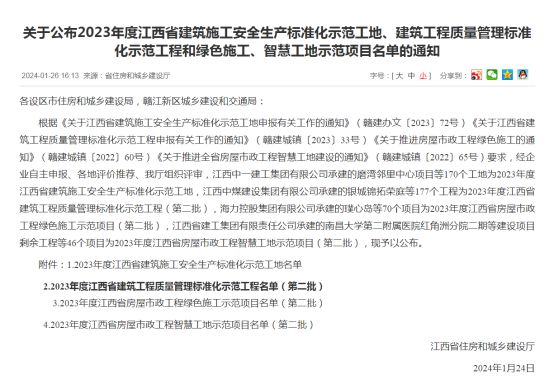 祝贺赣阳建工集团荣获2023年建筑工程质量管理标准化示范工程