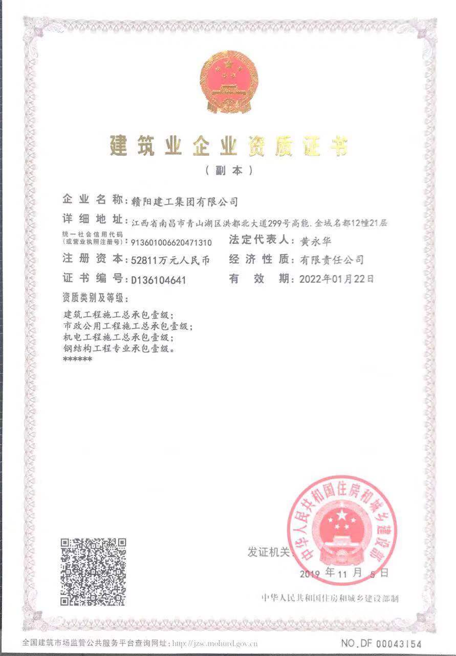 热烈庆祝赣阳集团钢结构工程专业承包资质等级升级为“壹级”